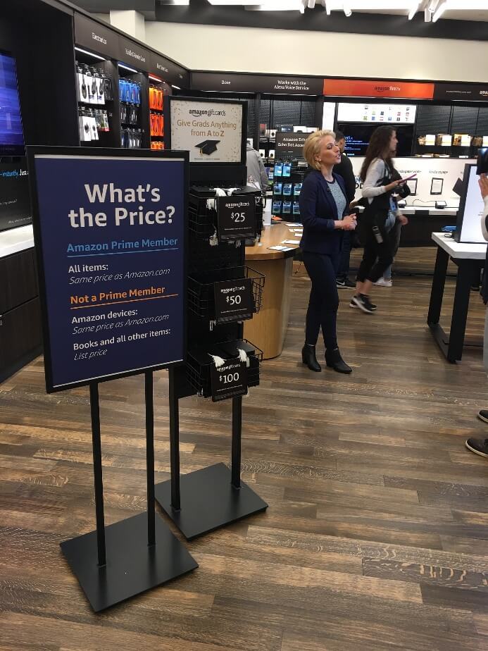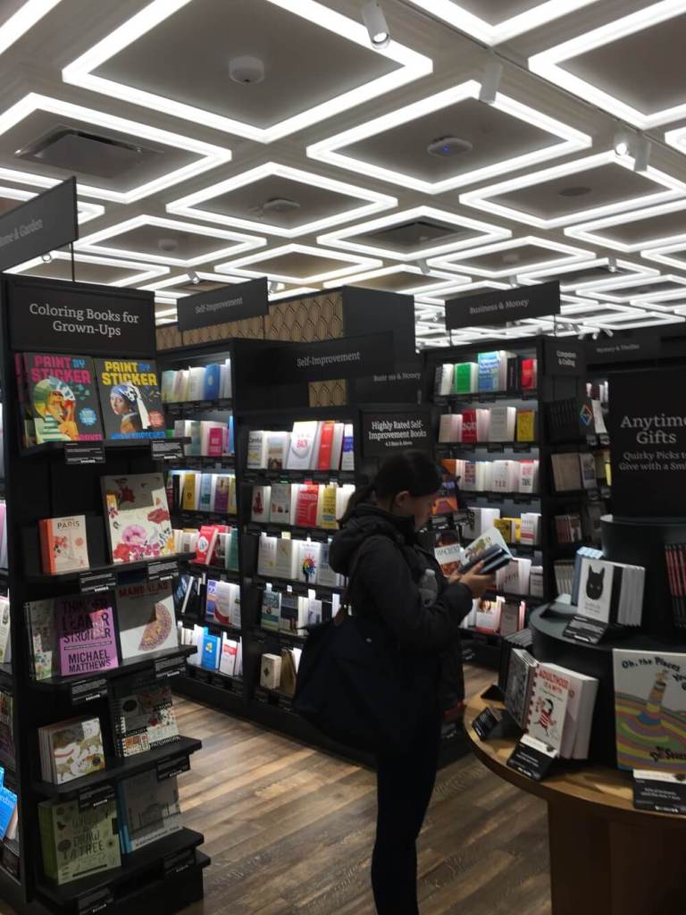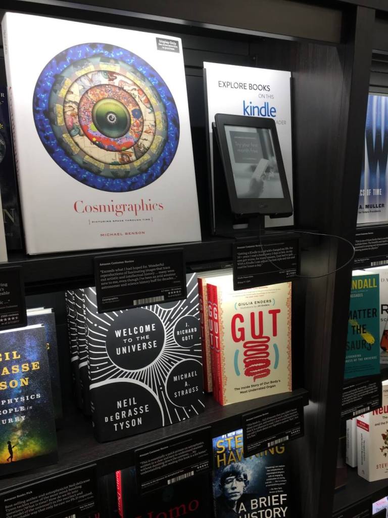 Tienda fisica de Amazon de libros en Nueva York. Venden libros, gadgets, echo y kindle.